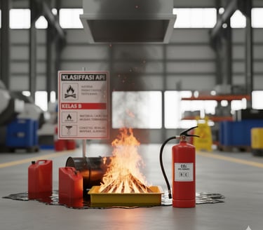 Kebakaran yang melibatkan cairan mudah terbakar seperti Bensin, solar, oli, alkohol, cat, minyak tanah, dan gas LPG.